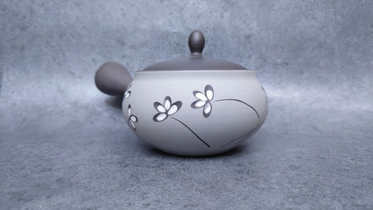 Teapot | Tokoname ware | Touyou-made | Black clay flat Maruno flower teapot 250cc
