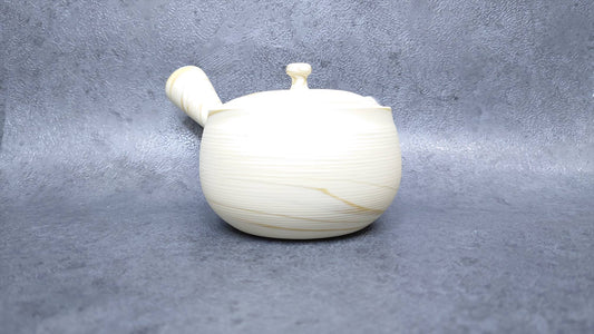Teapot | Tokoname ware Pottery | White and yellow kneaded round shape teapot | 240cc