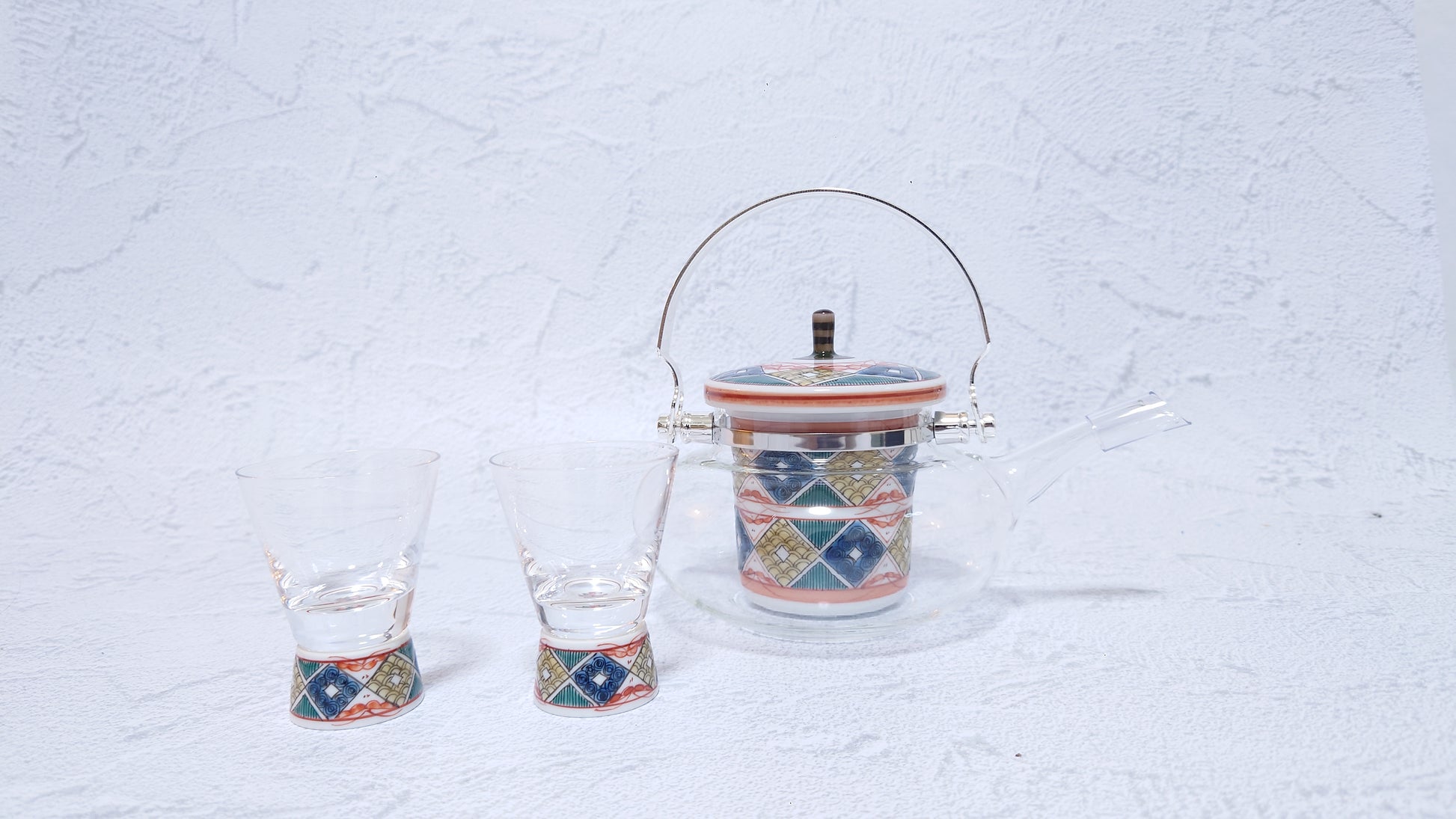 JAPAN POTTERY | Kutani Japanese Glass Chirori | Glass set |冷酒気 古久谷菱文[Kokutanihishimon] | 360ml / 60ml